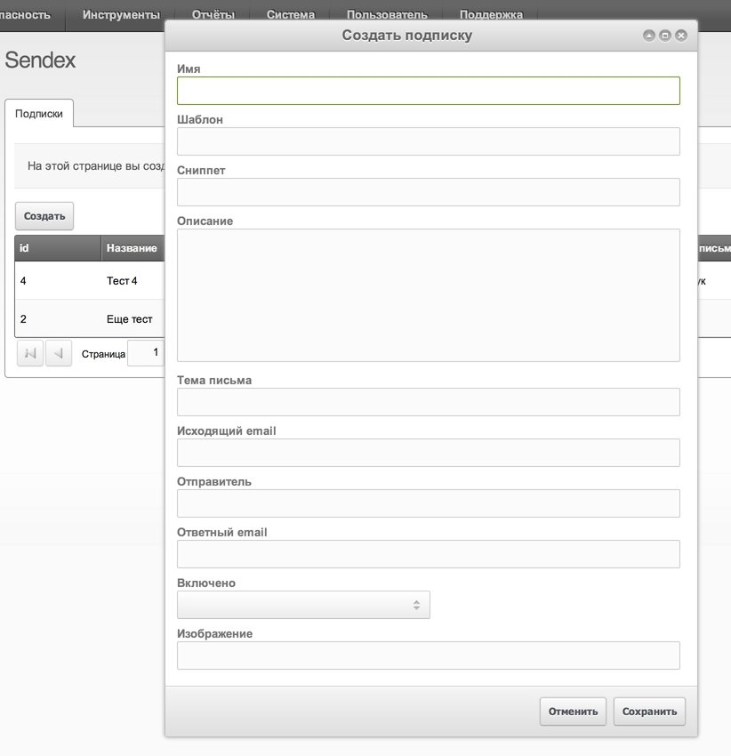 ]У нас два окошка: создание и обновление записи. Это переменные Sendex.window.CreateItem и Sendex.window.UpadteItem. Чтобы не было путанницы, предлагаю сразу все эти Item переименовать в Newletter.