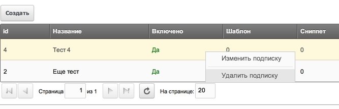 Ext.reg('sendex-grid-newsletters',Sendex.grid.Newsletters);И вот теперь можно указывать xtype: 'sendex-grid-newsletters' где угодно - и там выведется наша таблица.