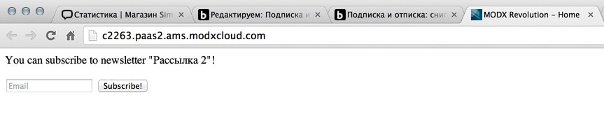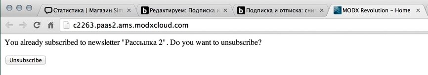 Теперь оформляем сниппет Sendex, который будет выводить наши формы отписки\подписки и проверять статус юзера.