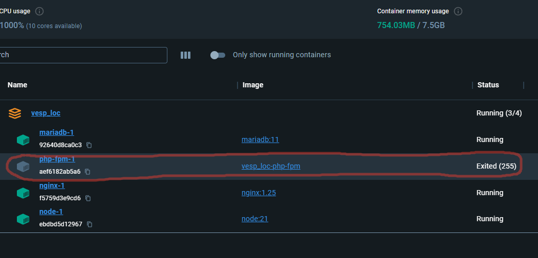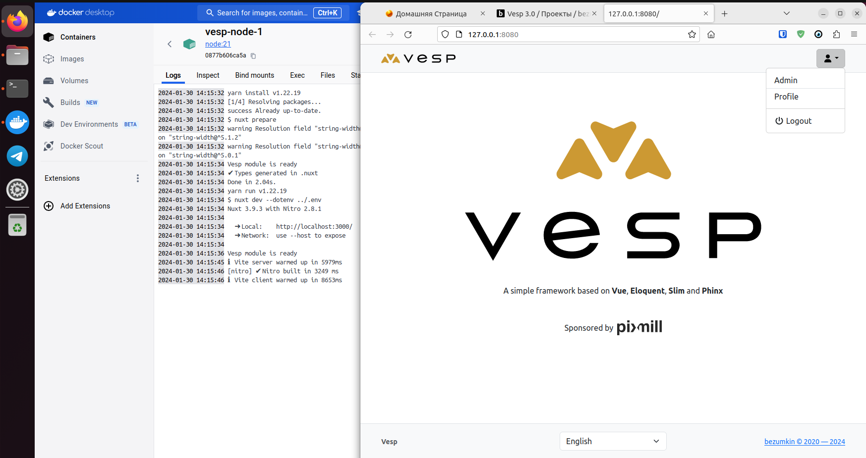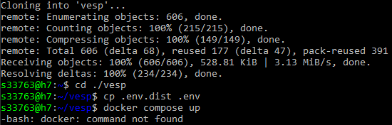 docker-compose up --buildЕсли у вас уже есть проект с названием vesp в докере, нужно указать новое имя в .env перед запуском, например: