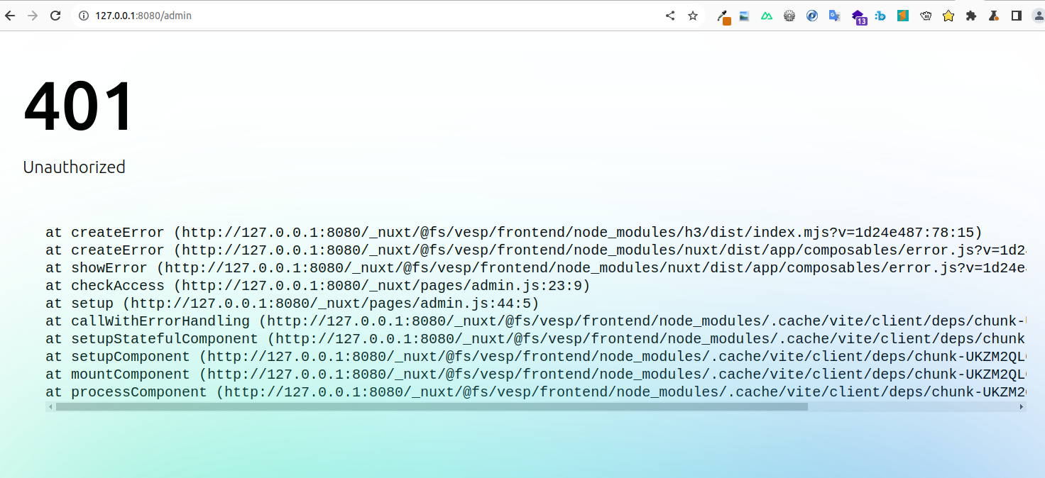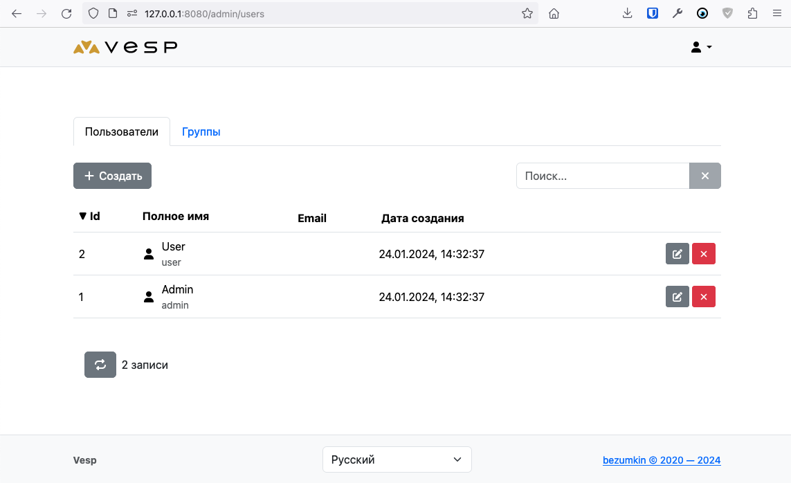 Дожидаемся в консоли надписи Vite client warmed up in, открываем 127.0.0.1:8080 и входим в админку, используя логин и пароль admin.