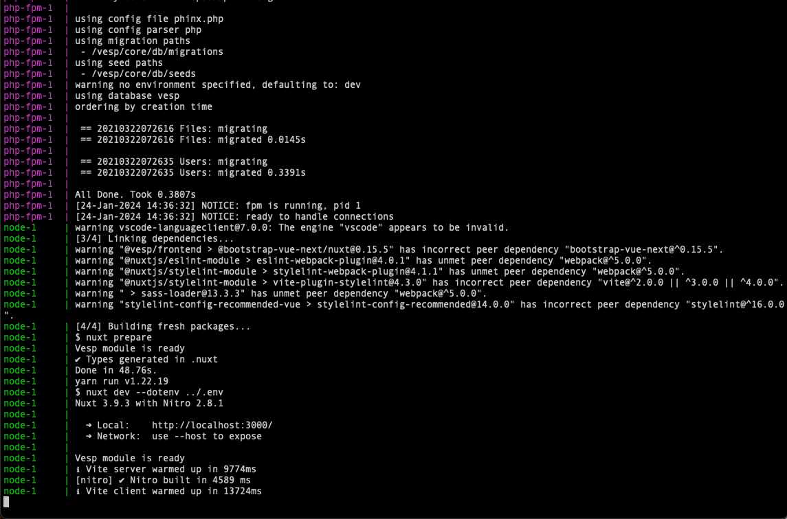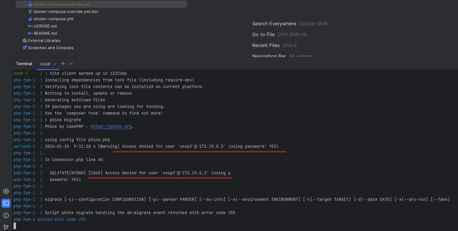 COMPOSE_PROJECT_NAME=vesp-newМиграции и сиды теперь накатываются при первом же старте, никаких лишних телодвижений.