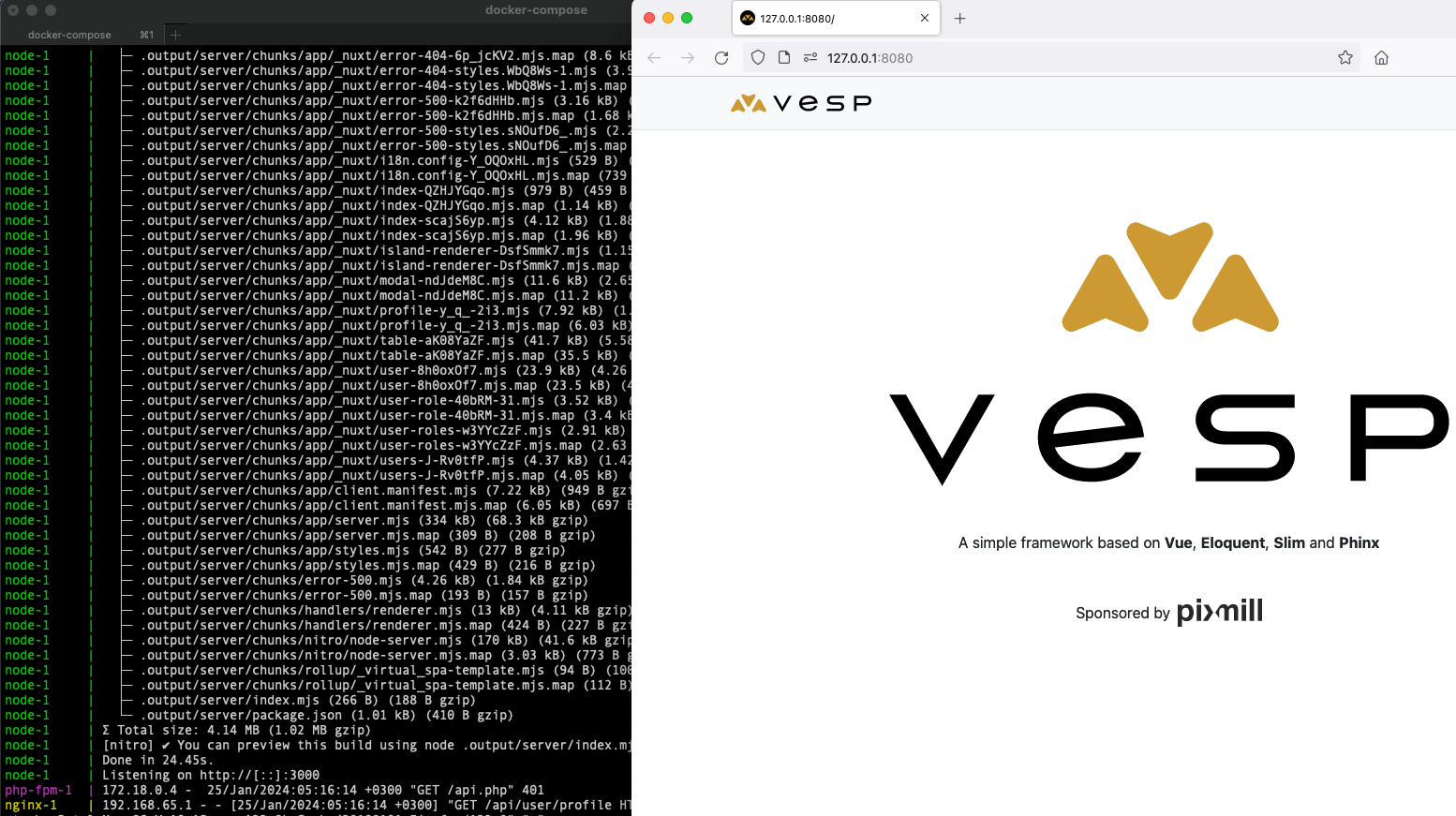 Как известно, Vesp состоит из Vue, Eloquent, Slim и Phinx. 3 части названия состовляет PHP бэкенд (пакет vesp/core), оставшаяся 1 часть - это фронтенд на Vue (пакет @vesp/frontend).