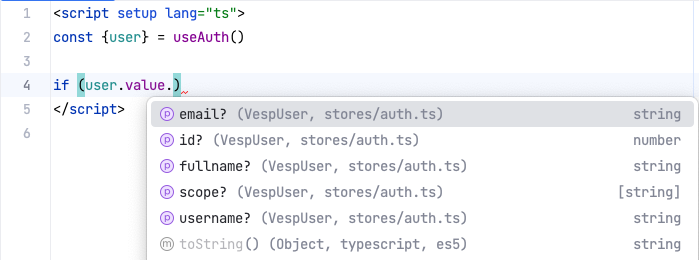 }Добавил composable функцию useAuth для быстрого доступа к этому хранилищу, и стало хорошо: