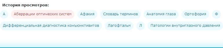 Мой пример: Проект про офтальмологию (История просмотров, перед футером страницы)