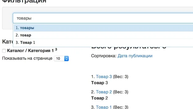 Есть два способа вывода поиска на сайте: простой и с фильтрацией.