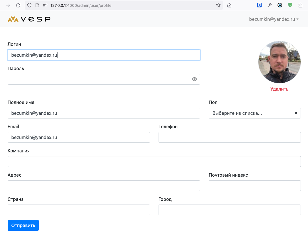 </script>Вот так мы используем одну форму аж в трёх местах: редактрование юзера, профиль юзера адмики, профиль юзера на сайте.