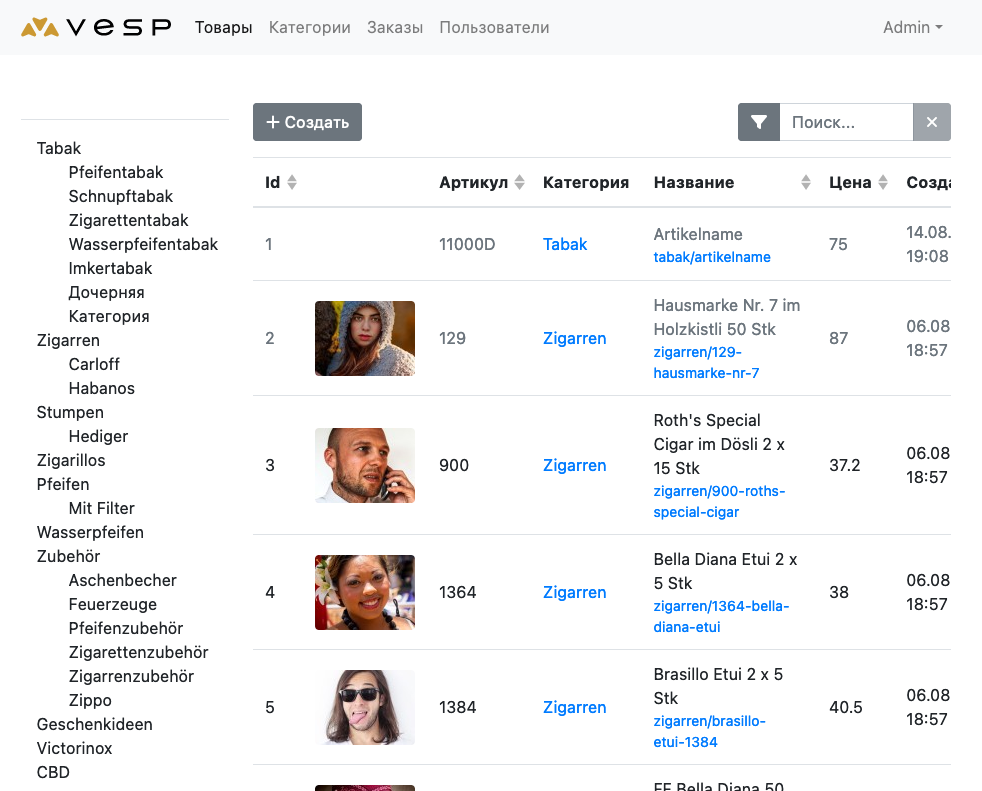 Значение компонента будет передано в параметр filters таблицы, где его поймает наш контроллер Controllers/Admin/Products.php и отфильтрует товары:
