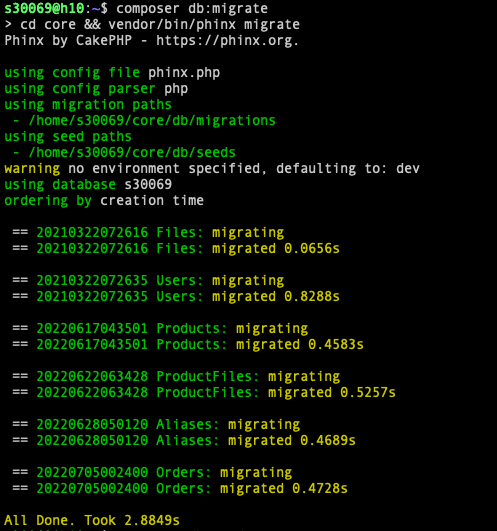 composer db:migrate