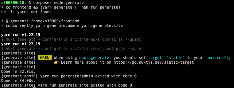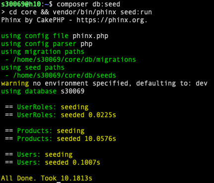 composer db:seedНу и собрать приложения через composer node:generate
