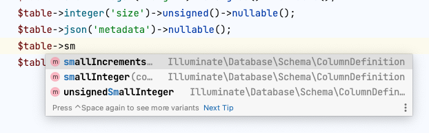 $table->id(); // Первичный ключ Unsigned Big Integer с автоинкрементом