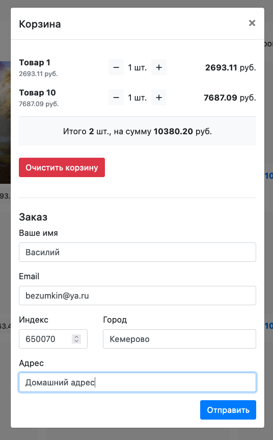 Создание заказа расписано в самом минимальном виде, чтобы вы понимали принцип работы. Вот итоговый коммит в репозиторий.